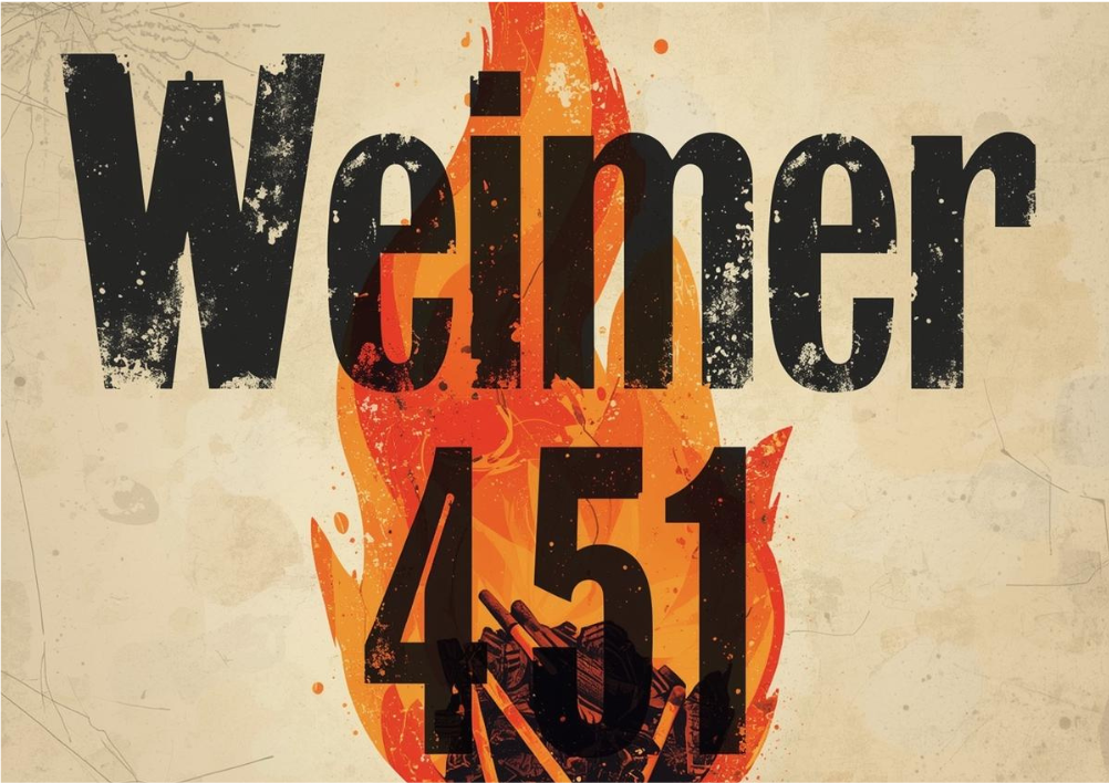 Gegen eine Zuspitzung in Wort, Bild oder Schrift hingegen, die die Befürchtungen gegenüber Deutschen im Umgang mit Büchern im Hinblick auf die Zeit von 1933 bis 1945 herausarbeitet, habe ich nichts einzuwenden. Eine solche Zuspitzung, habe ich mit dem generierten Beitragsbild und Titelteil »451« versucht. Die Grafik des Beitragsbildes spielt auf den dsytopischen Roman »Fahrenheit 451« von Ray Bradbury an.